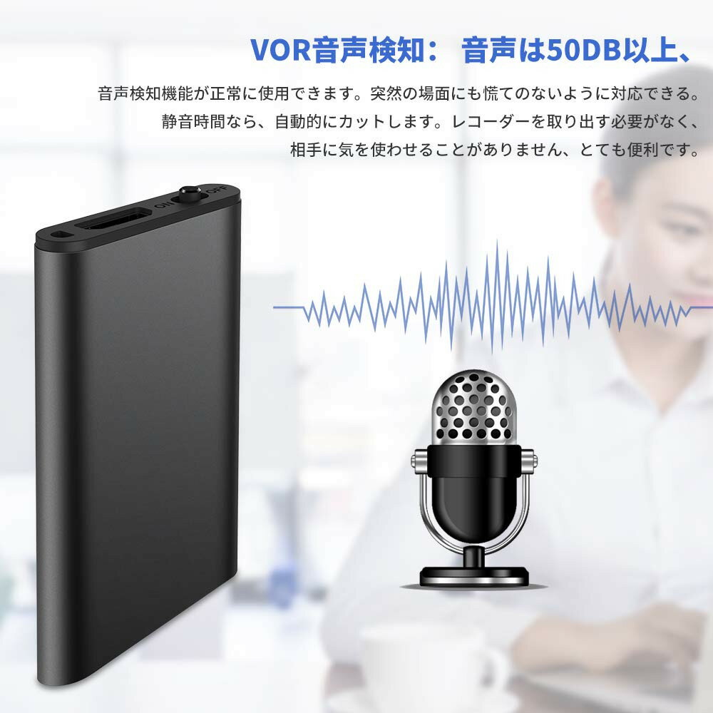 音声検知モード(VOR)で音声を検知すると周りに知られずに自動で録音を開始し、音声が検知しないときは自動的に音声データを保存します。
