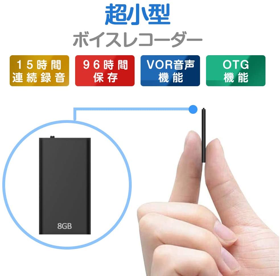 満充電で、最高15時間連続録音できます!8GBの容量がありますので、最大約96時間の録音を保存できます。