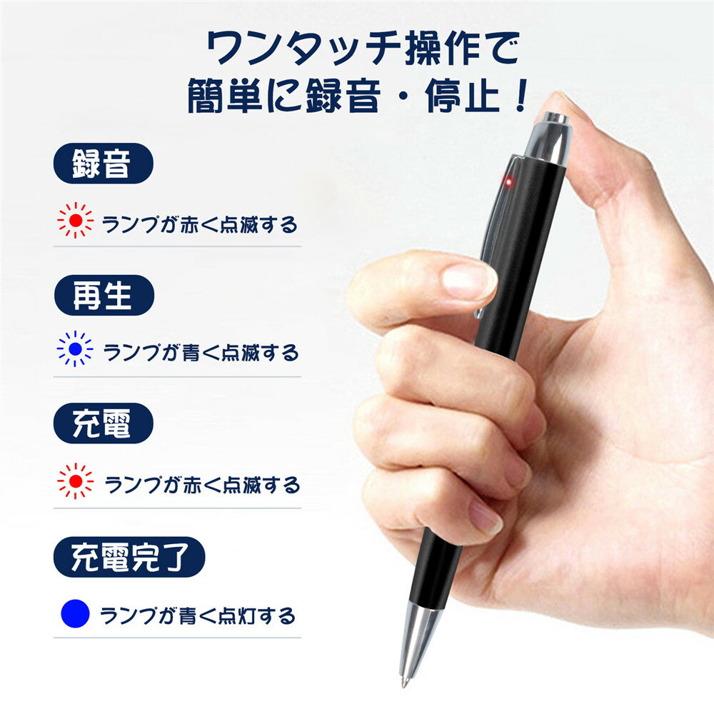 QZT ペン型ボイスレコーダー ボイスレコーダー ペン型 16GB 極細 icレコーダー ボールペン型 音声起動録音 録音機 15時間連続録音 196時間録音保存 高性能 大容量 高品質 書きながら録音できる