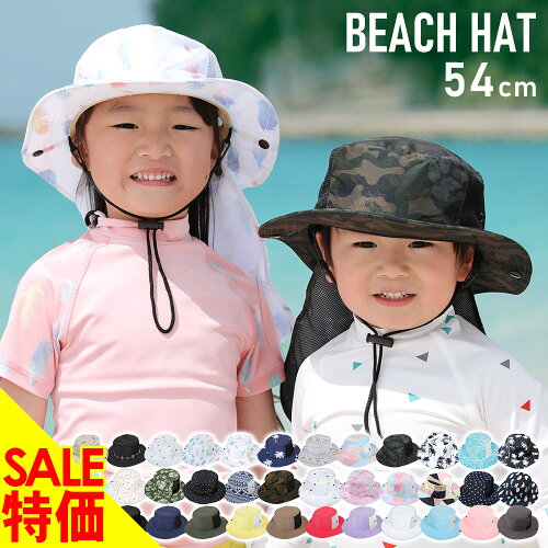 【クーポン配布中】ビーチハット キッズ 向けサイズ サーフハット サファリハット 海 帽子 UV 熱中症 対策 プール サーフィン SUP 海水浴 頭周り54cm 夏フェス 日よけ ラッシュガードとコーデ キャップ